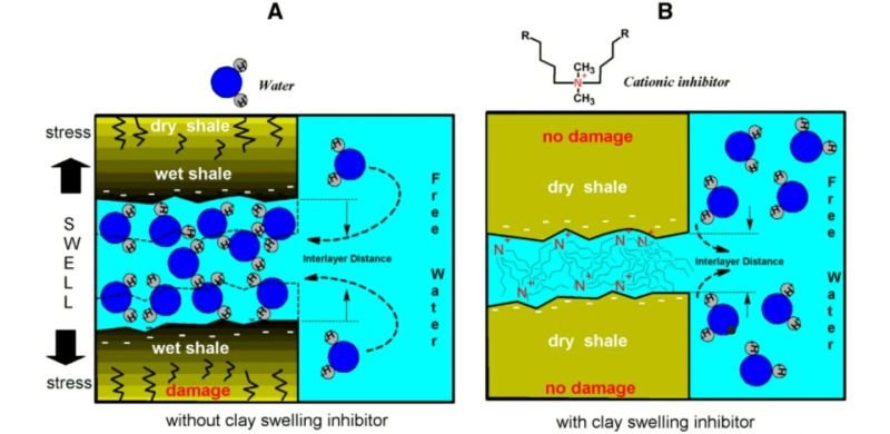 When water from drilling fluids enters certain shale formations, the clay minerals may begin to absorb water and swell.