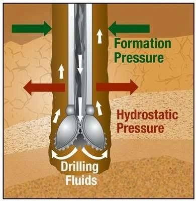 If the pressure from the mud column (hydrostatic pressure) is lower than the formation pressure, formation fluids can enter the wellbore.